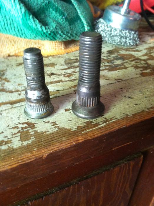 i spent the last few days swapping the original stock studs for TR6 rear wheel studs.
